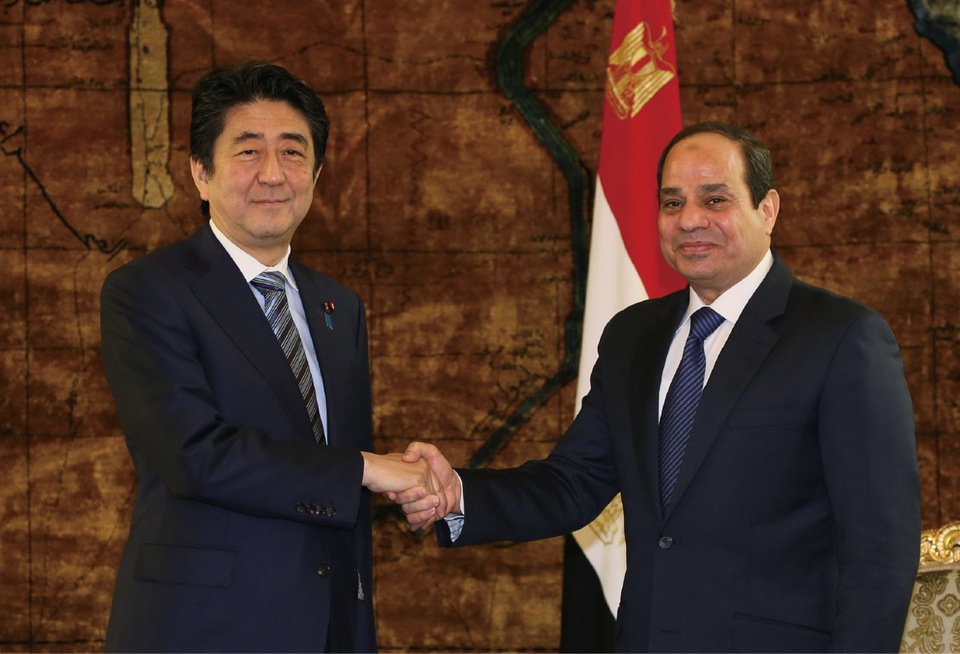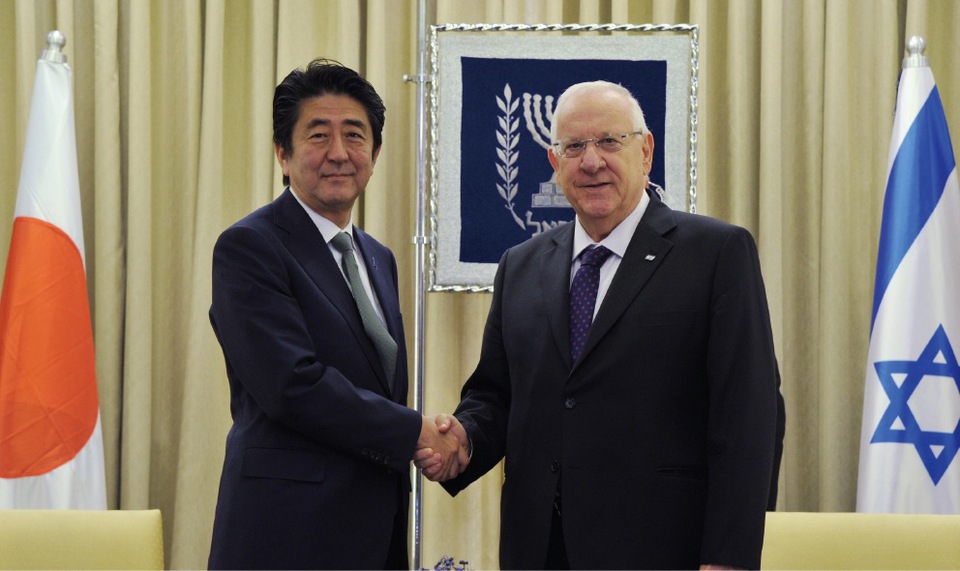 Prime Minister Abe at a bilateral meeting with Israeli Prime Minister Benjamin Netanyahu (January 2015).