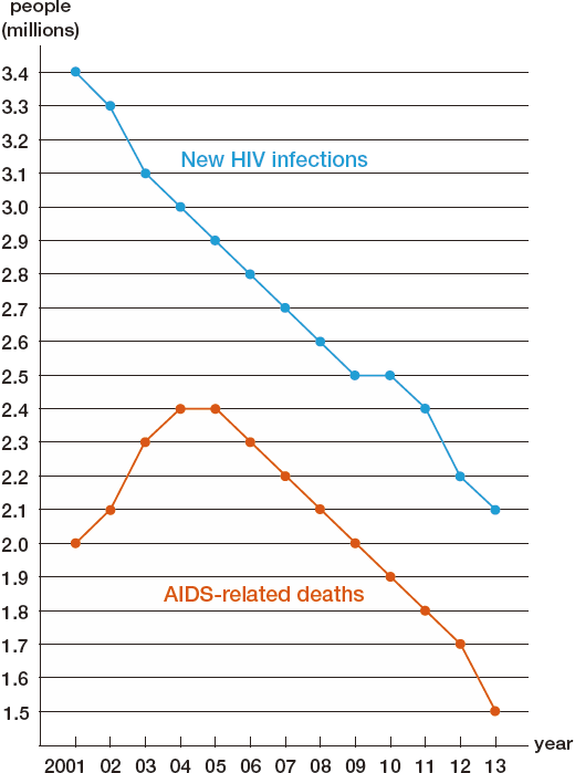 HIV, which causes AIDS, infects important cells in the “command centers” of the immune system, which protects the body from extemal threats. As the virus multiplies, it causes systemic immunodeficiency and, without treatment, infected patients will die. Antiviral drugs work to limit this propagation. As of 2013, AIDS continues to have a devastating impact, which 2.1 million newly infected patients every year worldwide and annual deaths totaling 1.5 million. As of 2013, according to the UNAIDS Global Plan, there were 35 million AIDS patient worldwide.