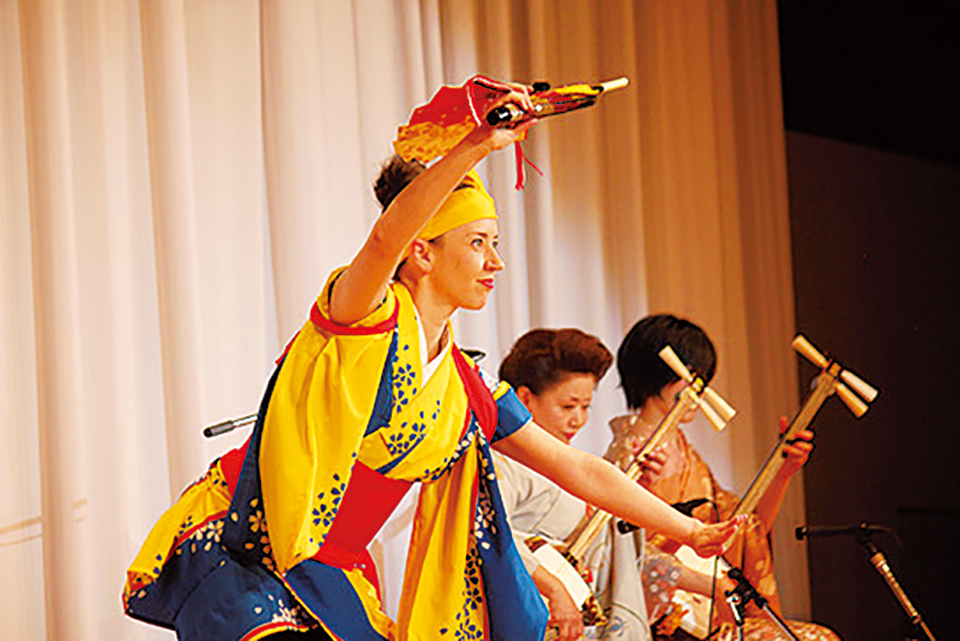 Archambault is a proficient min’yo musician and singer, with her talents extending to multiple instruments as well as folk music’s demanding vocal techniques. She must also meet the challenge of singing in various local dialects. But her greatest talent—the one for which she holds a professional license—is minbu , or folk dancing. She began studying the art in 2008 and has since rapidly built her repertoire of regional dances.