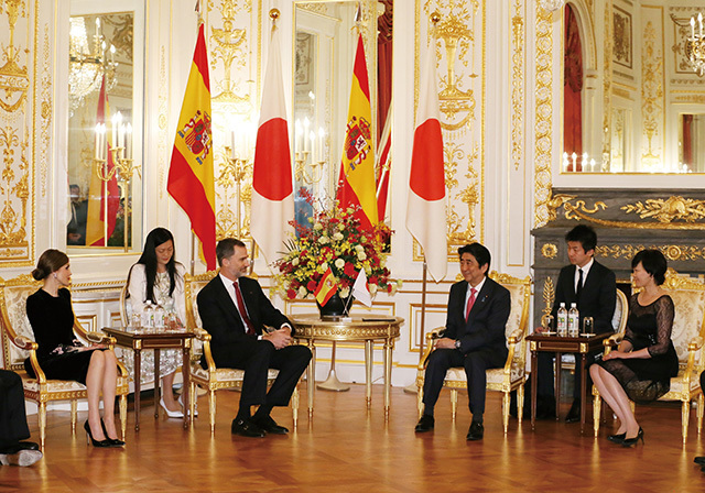 Held a banquet at the Akasaka State Guest House to welcome His Majesty the King Felipe VI of Spain and Her Majesty the Queen Letizia of Spain, who were paying a state visit to Japan. (April 2017)