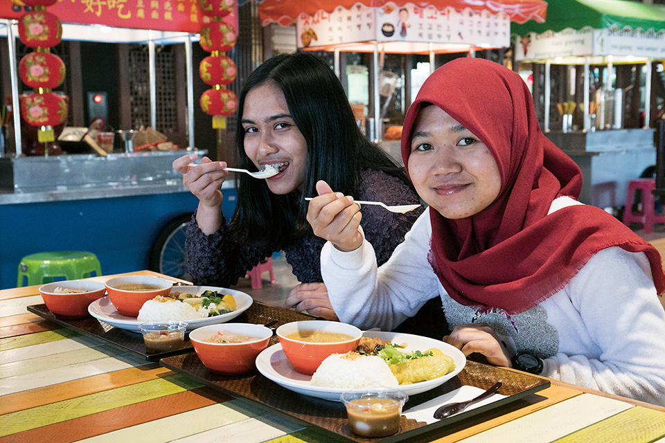 Educational organizations that accept international students are also taking steps to meet the culinary needs of Muslims. Kanda University of International Studies opened its NAHA-certified “Shokujin” Cafeteria in 2014 to give students the opportunity to better understand Asian languages and cultures through food. In applying for certification, the university impressed on the entire kitchen staff the necessity and value of strictly following Islamic halal laws. The cafeteria has proven a success and gained the trust of the Muslim community. When it served the iftar evening meal during the month of Ramadan, nearly 100 people including Muslims living in the neighborhood came to eat and celebrate. Rexy, an international student from Indonesia, remarked with a thankful smile that she finds it “very helpful to be able to have halal meals at the university. I can spend more time studying instead of having to spend that time cooking for myself. I appreciate their consideration for Muslims and the careful efforts they make to serve us.”