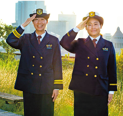 Coast guards who play an important role, such as the junior officer Nohara (left), and Yoshioka, who became the MCT’s first female coordinator, are being trained in large numbers. The ratio of female officers in JCG has nearly doubled in 10 years. “I want to try new things to be a role model for other women,” remarks Nohara.