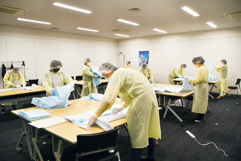 While treating increasing numbers of patients this spring as the novel coronavirus proliferated, Japanese healthcare workers were faced with a serious shortage of medical-isolation gowns. As they sought a way to promptly ensure a steady supply within Japan, some companies from other industries volunteered to aid in the production.