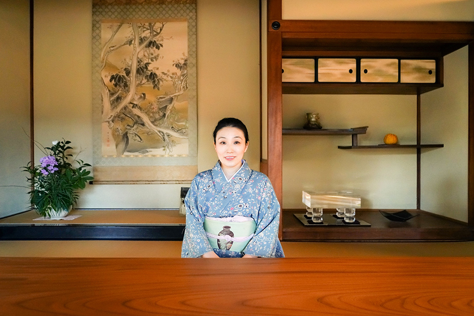 MIYAZAKI Tomoko, who used to be an office worker, has made abundant use of that experience to manage Jinya. In the photo, she sits in the VIP room that was made to accommodate Emperor Meiji (the 122nd Emperor of Japan, who reigned from 1867 to 1912).