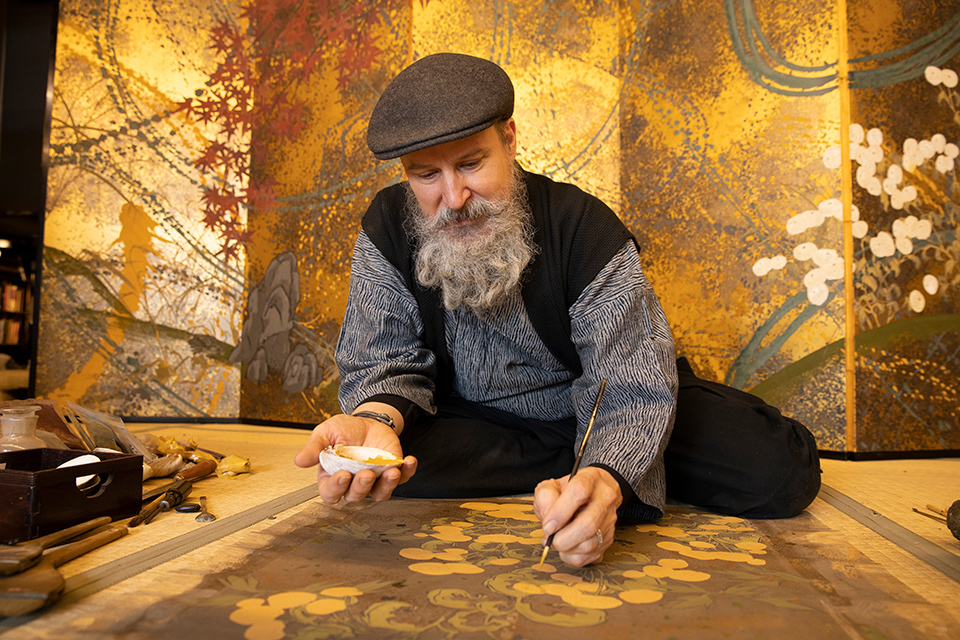 Expressing the beauty and essence of the natural seasons, an American artist turned his back on the Western style of painting to learn about traditional Japanese painting techniques and materials.