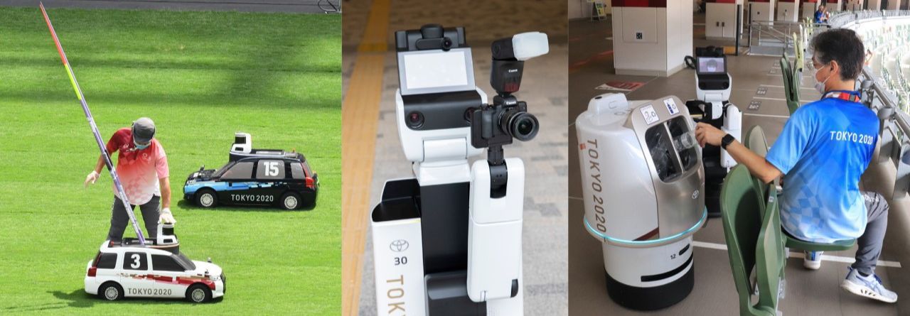 Center: Human Support Robots (HSRs) were also equipped with cameras to take commemorative photos at various locations, and were popular among competitors and volunteer staff. TOKYO 2020