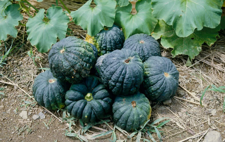 The Japanese kabocha is like a pumpkin, but smaller. Just as everybody loves pumpkin pie, people in Japan love dishes that include the slightly sweet kabocha. They can be prepared as tempura, stewed until soft, or mashed to a pulp for mixing with other ingredients in a salad. Orange kabocha on the autumn table is a sign of a sweet, sweet time!