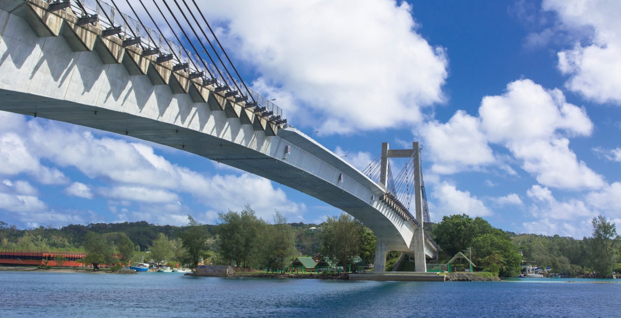 The photograph to the left is of the Koror-Babeldaob Bridge (KB Bridge) in Palau, an island country located in the western Pacific Ocean. It is the main artery connecting the country’s two main islands: Koror Island, home to the former national capital (also called Koror), and Babeldaob Island, the largest island in the archipelago, where the airfield, power station, and other major facilities are located.