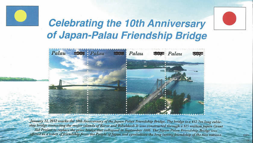 The government of Palau installed a floating bridge as a temporary replacement and at the same time asked Japan to help build a new bridge. Japan responded by providing grant aid for the construction, which began in November 1999. The new bridge was completed six years later, in 2002. The people of Palau named it the Japan-Palau Friendship Bridge, and a plaque with the name inscribed was placed at each end.