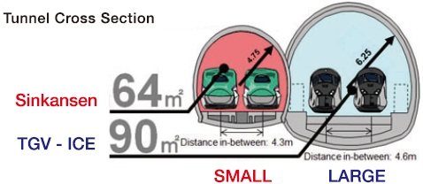 First are the initial costs. Since Japan’s geographic terrain is rather rugged, Japan has become very adept at building a relatively compact railway infrastructure. The airtightness and aerodynamic design of the Shinkansen made it possible to make the facilities compact compared to high-speed rail systems elsewhere; for example, small-sized tunnels, compact layout, and a short distance between tracks. Features like this help keep down construction costs.