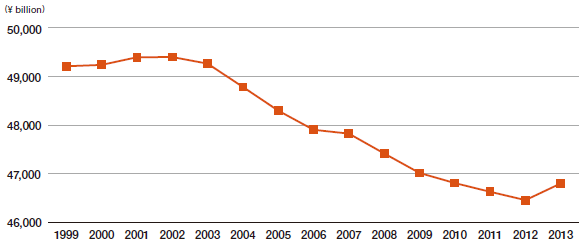 In FY2013, defense-related expenditures, which had been declining continuously since FY2003, were increased in real terms for the first time in 11 years, in order to reinforce preparedness aimed at protecting the lives and property of the populace and the integrity of its territorial land, waters, sea, and airspace, in light of the increasingly harsh security environment. Source: Defense of Japan 2013