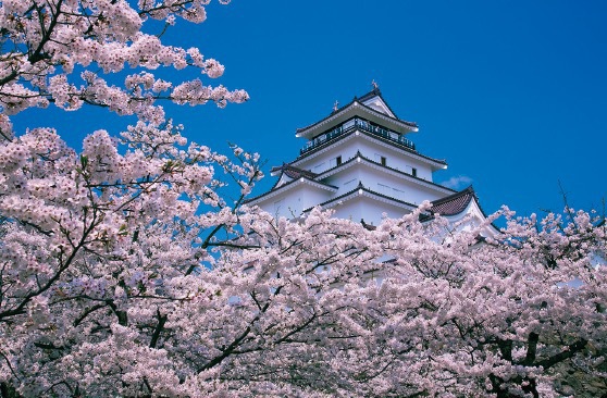 At present, there are about 4,000 cherry trees in Takadajo Park (located on the ruins of Takada Castle), which has long been a famous spot for cherry blossoms. Along the “Sakura Road,” a cherry tree–lined street that is lit up at night by 3,000 paper lanterns, the blossoms are reflected in the moat. This is also one of the three most famous spots in Japan for viewing cherry blossoms at night. From April 4 to April 20, many events, including shows, are held, and over 300 open-air stalls line the street.