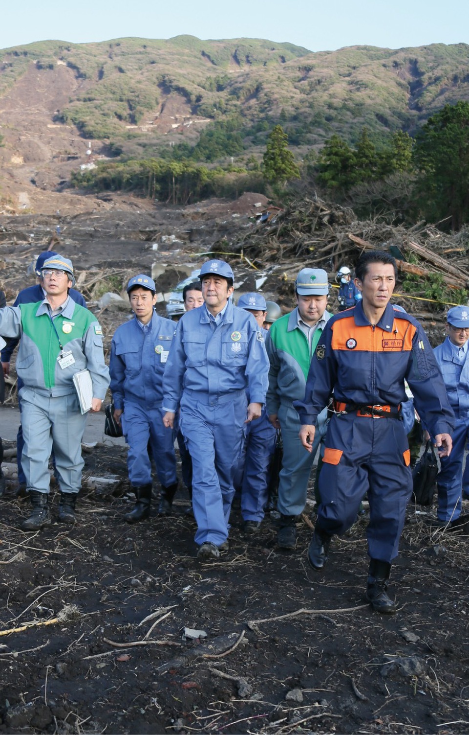 Observing the state of damage to Izu-Oshima Island, a part of greater Tokyo, which was hard hit by heavy rains, October 2013.