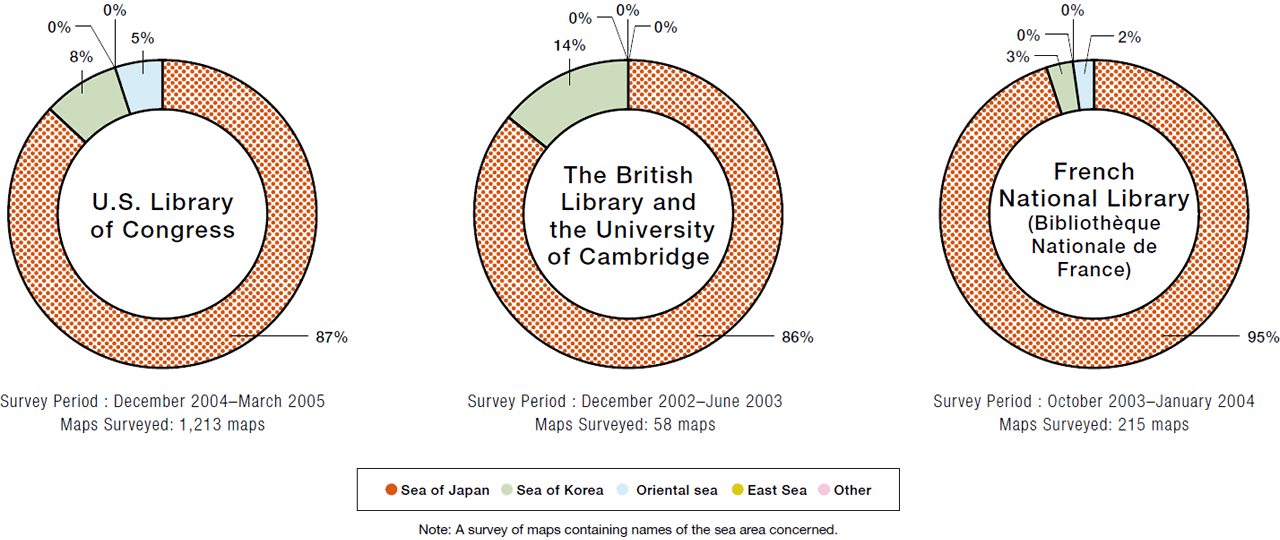 Japan has studied maps possessed by the U.S. Library of Congress, the British Library, the Bibliothèque Nationale de France, and other bodies and found that the name “Sea of Japan” was already used with overwhelming frequency in early 19th century maps. Japan during the Edo Period (1603–1867) had an isolationist policy, and was unable to exercise any influence to establish the name “Sea of Japan.” It is clear that the name is not connected with Japanese colonial rule in the early twentieth century. We must teach correct facts to the children of the world. This is the responsibility of all the parents.