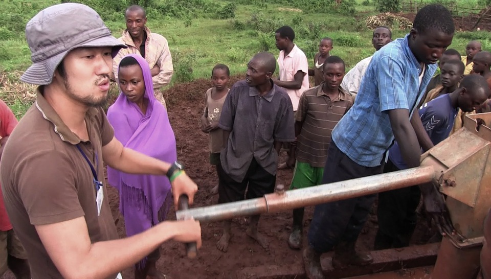 Atsushi Munakata repairs a well together with local residents. For two years he taught residents how to fix wells so that they could continue to have a supply of safe water even after he left.