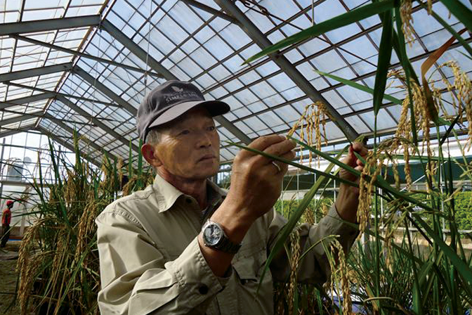 Tsuboi conducts a study at the experiment station. Of the 18 varieties of Nerica that have been developed, Nerica 4 is the most widely cultivated.