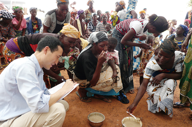 Dr. Toride explains, “Since taste is an important factor in assuring that infants will keep eating the product, we developed it in line with local needs through collaboration with the Department of Nutrition and Food Science at the University of Ghana.” Production is carried out together with a local food company. For distribution, Ajinomoto teamed up with a nongovernmental organization implementing a program supporting self-reliance for women, creating a system under which saleswomen sell the product person-to-person while promoting public awareness. Dr. Toride says this has been very effective in boosting demand. Also the government of Ghana is cooperating through the provision of education on nutrition.