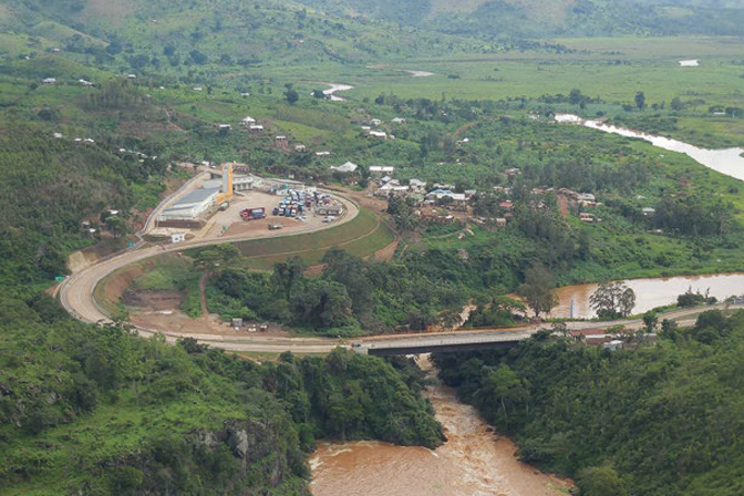 Overview of the new Rusumo International Bridge and One Stop Border Post (OSBP) complex. The area beyond the curve in the river on the left is the site of the OSBP on the Tanzanian side of the border.