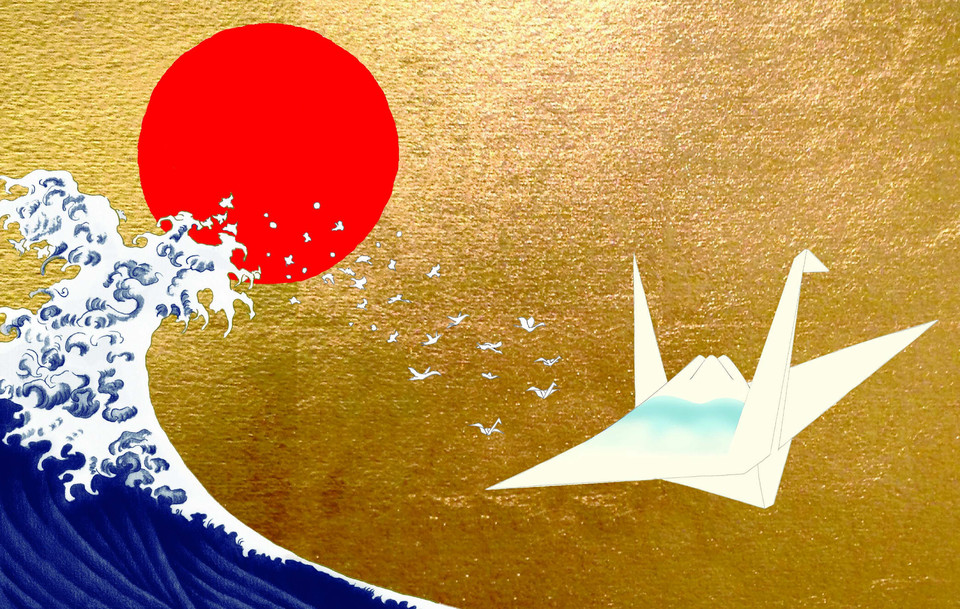 Crane Fuji, a print from MacMillan’s series Thirty-Six New Views of Mount Fuji, celebrates Mount Fuji becoming a World Heritage Site and the dissemination of Japanese culture around the world. The print series was inspired by the ThirtySix Views of Mount Fuji of the ukiyo-e artist Katsushika Hokusai (1760–1849). © 2012 Peter MacMillan.