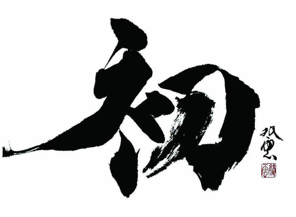 The character hatsu (初) combines an element meaning “clothing” on the left and one meaning “blade” on the right; together they represent the idea of cutting cloth with scissors. Cutting the fabric to size is the first step in making a piece of clothing, and this character has thus come to express the idea of beginning and of first things.