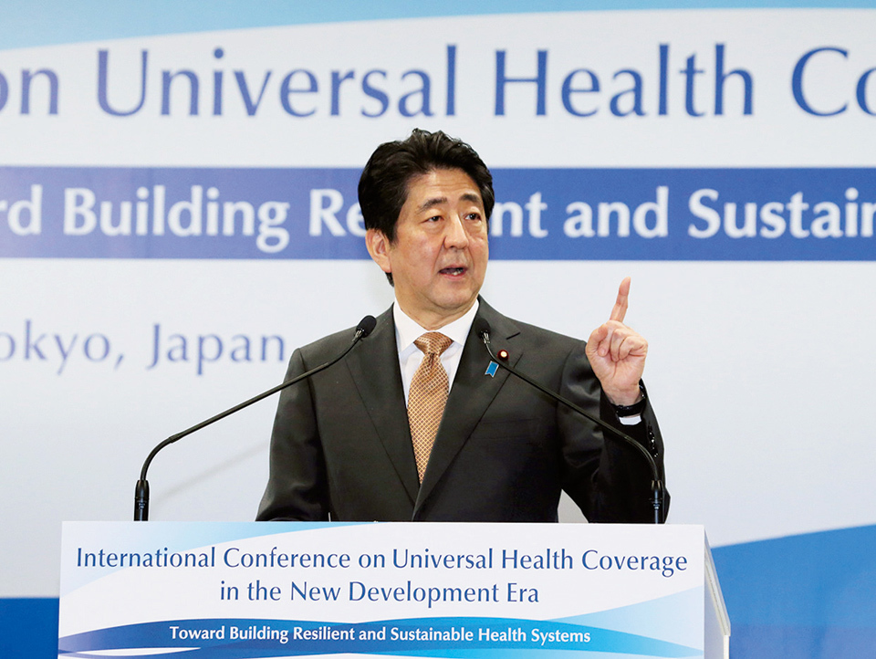 One of the overarching goals of my tenure as prime minister has been to make a “Proactive Contribution to Peace” based on the principles of international cooperation. This means that contributing to world peace and prosperity is a fundamental principle and aim of Japan’s foreign policy. To this end, I believe that playing a major role in the effort to meet global challenges, including global health, based on the concept of human security is nothing less than the implementation of our “Proactive Contribution to Peace.”