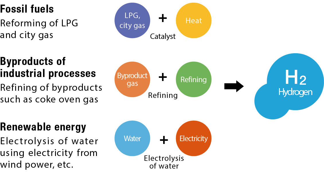 Hydrogen can be used as a source of energy for emergency power generation when regular power supplies are cut off by disasters.
