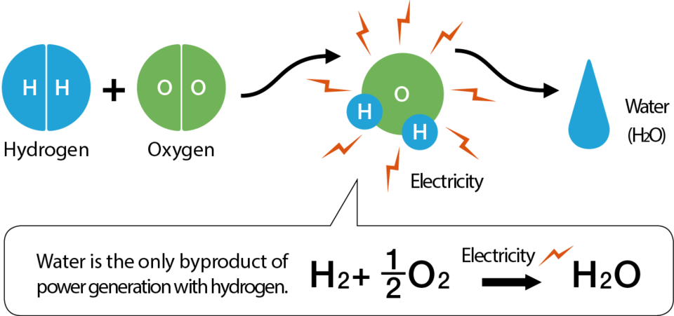 When hydrogen is used as a power source, the only byproduct is water; no carbon dioxide is emitted.