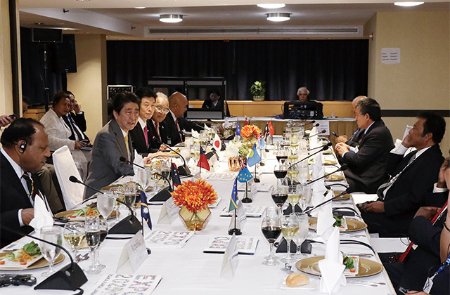 Attending the fourth Japan-Pacific Islands Leaders Meeting in New York, where he exchanged views with leaders and other officials of Pacific Island countries with the aim of achieving stability and prosperity of their region. (September 2017)
