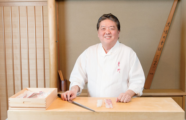 Born into the family that runs Aoyagi, a long-established traditional Japanese restaurant in Tokushima Prefecture. After training at the famed Japanese restaurant Kitcho in Osaka, took over the family business and became the third-generation owner of Aoyagi. In recognition of his work organizing Japanese food fairs in France at the invitation of top hotels such as the Hôtel Plaza Athénée and the Ritz Paris and his contribution to culinary exchange between the two countries, the French government bestowed on him the title of Officer of the Order of Agricultural Merit in in 2010. In February 2017, he was appointed as the first non-French member of the strategy committee chaired by Joel Robuchon at Ferrandi.