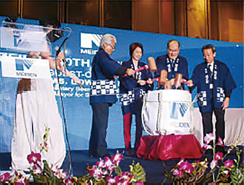 Important figures from the Singapore government attended the 40th anniversary of local subsidiary Meiden Singapore Pte. Ltd.’s founding, symbolic of the long-standing cooperative relationship between the country and company.