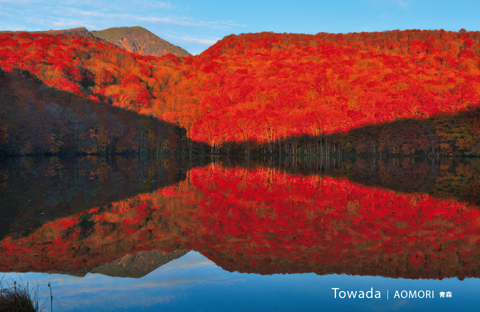 Japan’s wide variety of hardwoods provide a rich array of colors in autumn. The word in Japanese is kiseki no kouyou (miraculous autumn leaves)—a replete experience at Tsuta Numa Lake. Tsuta Numa is located in Towada Hachimantai National Park, and many tourists visit its majestic sights and hot springs, which are nurtured by volcanic activity. The autumn colors of Tsuta Numa hold a beauty of their own during the day, but the moment after sunrise awakens the real miracle of the colors. In the morning, the ocean of rich reds reflect against the lake’s surface, seemingly transcending time and space.