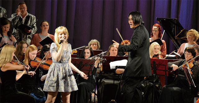 Jenya singing Melodies of Life from the soundtrack of Final Fantasy IX, accompanied by a full orchestra at a Game Symphony Japan concert in Russia.