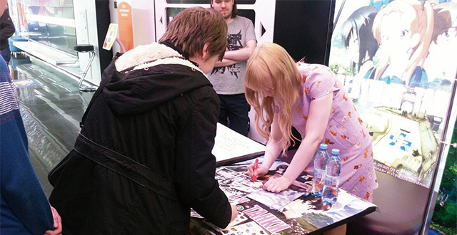 Meeting fans and signing autographs for the screening of GIRLS und PANZER das FINALE 1 in Moscow, in April 2018.