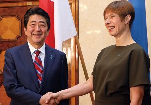 Prime Minister Shinzo Abe visits the Sugihara House museum in Kaunas, Lithuania. The museum occupies the city’s restored former Japanese consulate and commemorates the actions of the late Japanese Consul Chiune Sugihara (seen in the framed photograph on the left side of the desk), who issued “Visas of Life” to Jewish refugees fleeing Nazi persecution. The museum’s purpose is to remind visitors of the importance of peace and humanity.