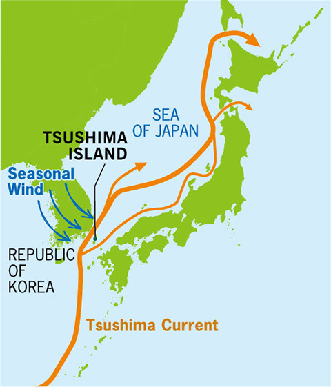 Situated in the Sea of Japan and wedged between the Kyushu region of southwestern Japan and the Korean Peninsula, Tsushima is a group of islands with a resident population of 30,000 people. The blue, clear ocean waters encircling Tsushima are a popular spot for fishing and marine sports, while on the northern shore lies one of the best beaches in Japan, Miudahama, which has natural white sand. It is an idyllic place, with rich fishing grounds thanks to the Tsushima Current, mountains that enfold the scenery with signs of the seasons, and a lifestyle that has shown respect to nature for generations. The beautiful islands and shores are sights that few have yet seen, but hopefully more people will come to witness them.