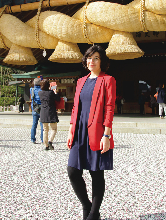 “What a wonderful, refreshing feeling! Of all Japan’s power spots, nowhere can you feel as much spiritual energy as here.” So saying, Camila Iquiene arrives at grounds of the Izumo Taisha Grand Shrine (formally Izumooyashiro) with a big smile on her face. Iquiene is from the state of Rio de Janeiro, Brazil, and is now approaching her third year in Izumo City, Shimane Prefecture, where she is stationed on the JET program. Izumo is an area which is famous for its deep connection to Japan’s ancient myths, and its most iconic sightseeing location is the Izumo Taisha, where Okuninushi-no-Okami, the “nation-building god,” is enshrined. Having always loved both nature and history, Iquiene says she is delighted to be in Izumo, a land steeped in mythology, and blessed with a beautiful landscape of rugged coasts and deep valleys.