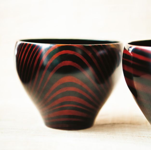 Wooden bowls coated with urushi highlighting the grain exude an all-natural one-of-a-kind feel.