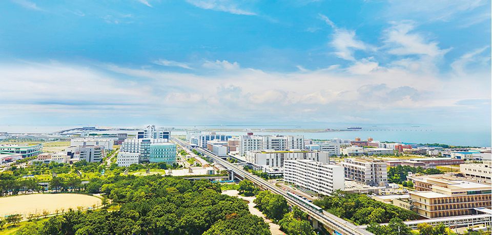 The Kobe Biomedical Innovation Cluster occupies the southern half of Port Island, a man-made island in the port of Kobe. With plenty of space for neighbors, more medical-related companies are anticipated to be located here in the future.