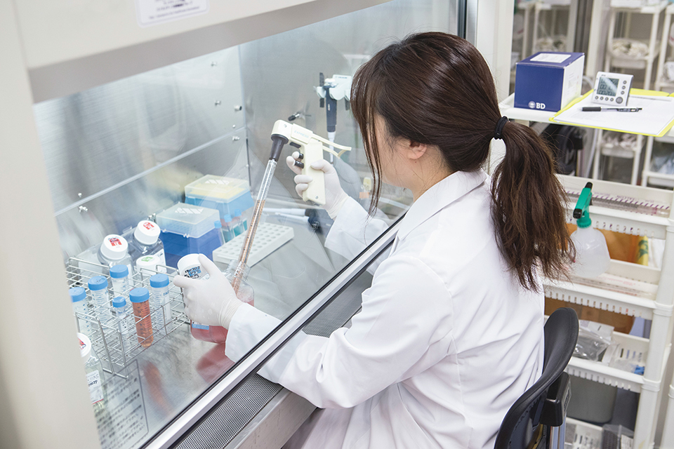 Results that contribute to global society are already beginning to take shape. In 2014, a patient with age-related macular degeneration, which occurs as a person ages, was treated by a team led by RIKEN, Kobe City Medical Center General Hospital and FBRI which achieved the first transplantation of retinal pigment epithelium sheet grown from the patient’s own iPS cells (induced pluripotent stem cells). That was followed in 2017 by the transplantation of retinal pigment epithelium sheet grown from another person’s iPS cells. At the Kobe Eye Center, specialized eye research continues to advance. As the population grows older, the practical implementation of regenerative medicine is gaining attention.