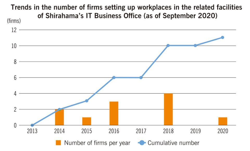 The increasing number of companies and their employees relocating to Shirahama also brings benefits to the local community by boosting its tourism industry. Formerly, the lack of visitors in the off season created problems for the town, but the expanded number of IT company offices has resulted in more business trips being taken there, as well as more visitors on weekdays and in winter—normally quiet times.