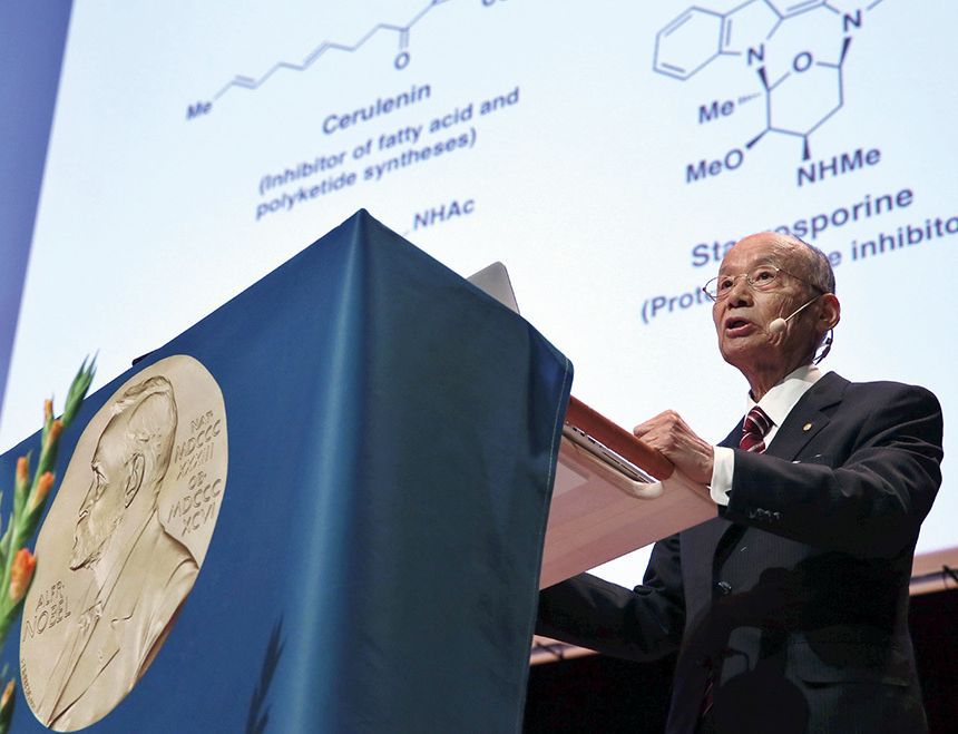 À ce jour, le Pr Omura a mis en lumière plus de cinq cents composés organiques, ce qui a permis de développer de nouveaux médicaments. Le prix Nobel lui a été attribué (son corécipiendaire est William C. Campbell, ancien chercheur à l’Institut Merck pour la recherche thérapeutique) pour la découverte ainsi que la culture de l’avermectine, et sa transformation en médicament antiparasitaire, l’ivermectine. L’avermectine est une molécule produite par des micro-organismes, que le Pr Omura est parvenu à isoler dans un échantillon de terre. Le médicament qui en découle est remarquablement efficace, et ce même à petite dose. Il contribue grandement à accroître la production alimentaire lorsqu’il est utilisé comme antiparasite sur le bétail.