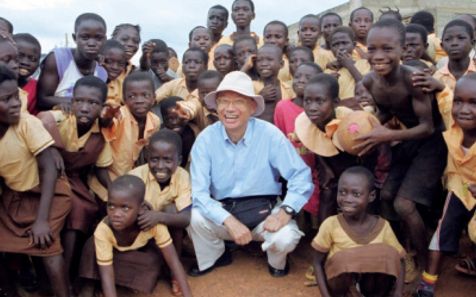 L’onchocercose, cause majeure de cécité, est sur le point d’être éradiquée grâce à un programme de don d’ivermectine à grande échelle. Le Pr Omura a été accueilli avec chaleur par des enfants au Ghana.