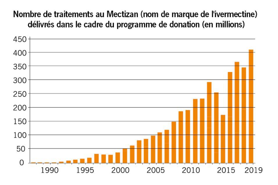 L’ivermectine s’est avéré être un traitement performant pour soigner des maladies humaines telles que l’onchocercose (communément appelée « cécité des rivières ») causée par des nématodes, et la filariose lymphatique (communément appelée « éléphantiasis »), des maladies auparavant très répandues, notamment en Afrique et en Amérique latine. Grâce au programme de donation de l’Organisation mondiale de la santé (OMS) et au soutien de Merck & Co. Inc. et de l’Institut Kitasato, l’ivermectine est aujourd’hui distribuée à 400 millions de personnes par an. Ce traitement a permis d’éradiquer les maladies susmentionnées dans certains pays. Il est aussi utilisé contre la strongyloïdose et la gale. En outre, il semblerait qu’il empêche le développement de certains virus tels que le VIH et la dengue. Des expériences in vitro ont démontré que l’ivermectine inhibe la fonction des substances qui véhiculent le virus jusqu’au noyau des cellules du parasite et sont à l’origine de la multiplication virale. Cette dernière découverte suggère que la molécule pourrait avoir un effet similaire sur le nouveau coronavirus en circulation.
